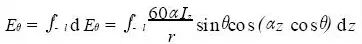式中Iz 为沿振子臂分布的电流,α为相位常数, r 是振子中点到观察点的距离,θ为振子轴到r 的夹角,l 为单个振子臂的长度。同样,也可以得到天线的输入阻抗、输入回波损耗S11 、阻抗带宽和天线增益等等特性参数 。